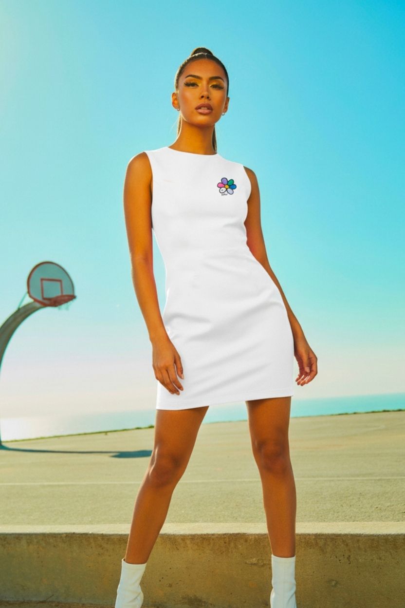 Robe courte en pur coton léger, sans manches, à encolure ronde, avec le logo imprimé en couleur sur le côté cœur et dans le dos.