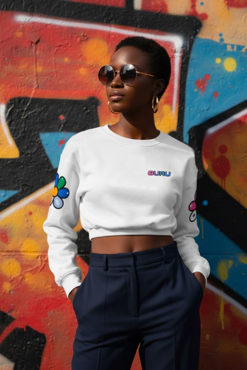 FELPA DONNA SCHIZZI CON CAPPUCCIO, STAMPA GURU TRANSFER BIANCA E LOGO MARGHERITA SULLA SCHIENA. 100% COTONE